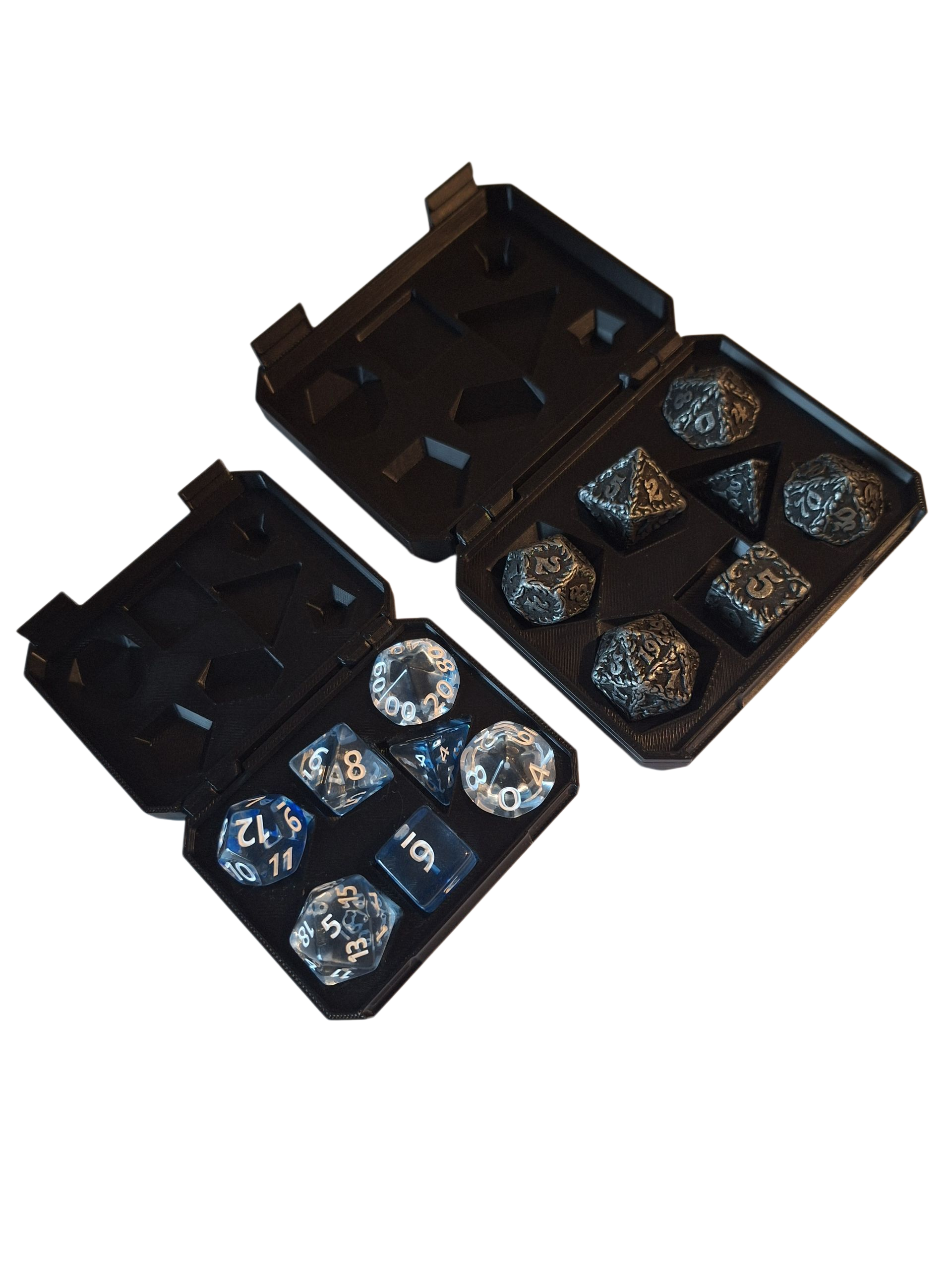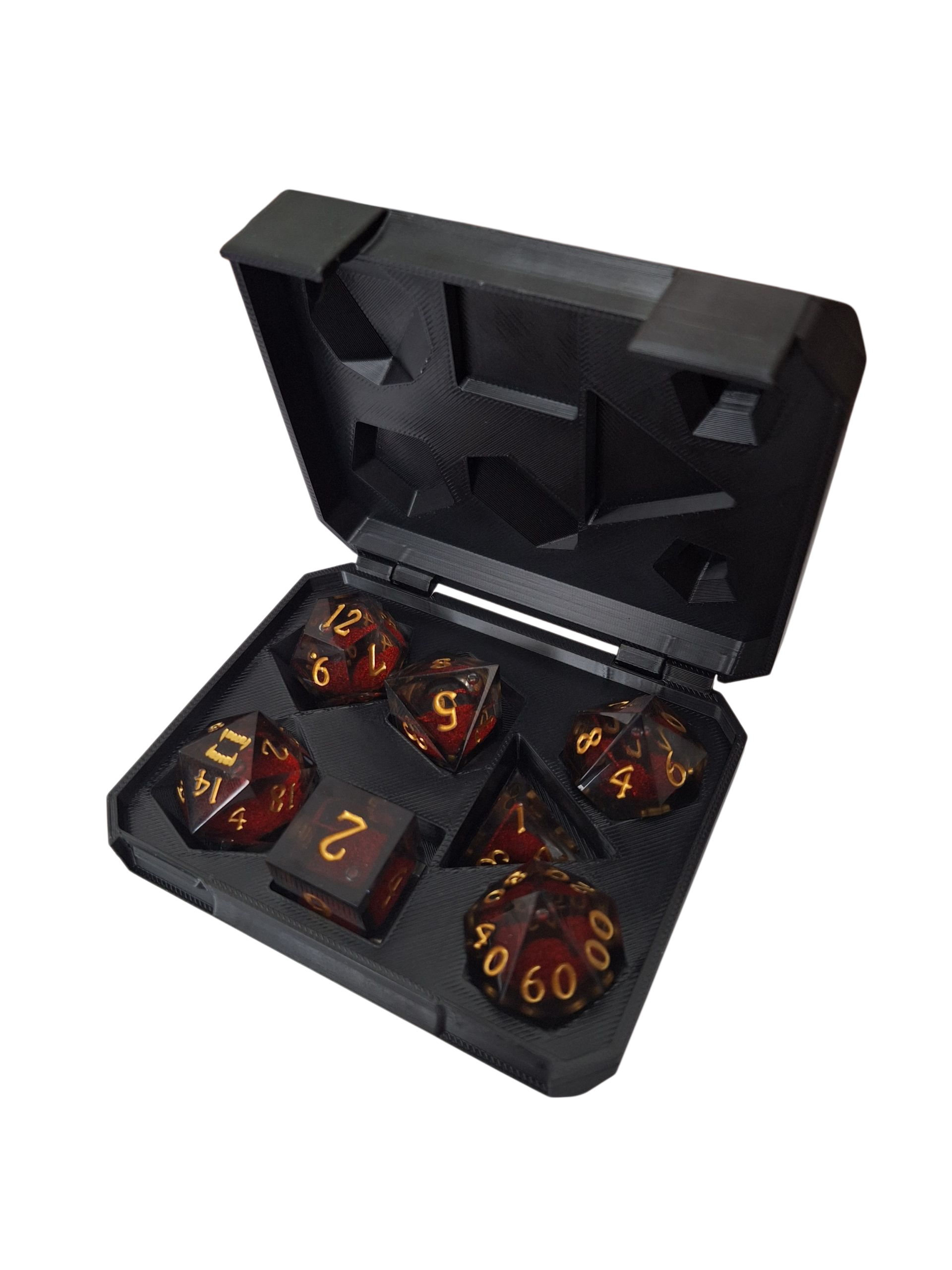 Elegantly designed to accommodate your standard 7-piece TTRPG dice set, this compact storage box offers refined simplicity without unnecessary ornamentation. Crafted with precision, it provides a secure and stylish way to keep your dice organized and readily accessible. Available in two sizes, it perfectly fits standard 16mm dice or larger, up to 30mm chonkers, ensuring versatility for your collection. Its understated design complements any gaming setup while prioritizing functionality and ease of use, making it an essential accessory for discerning players.