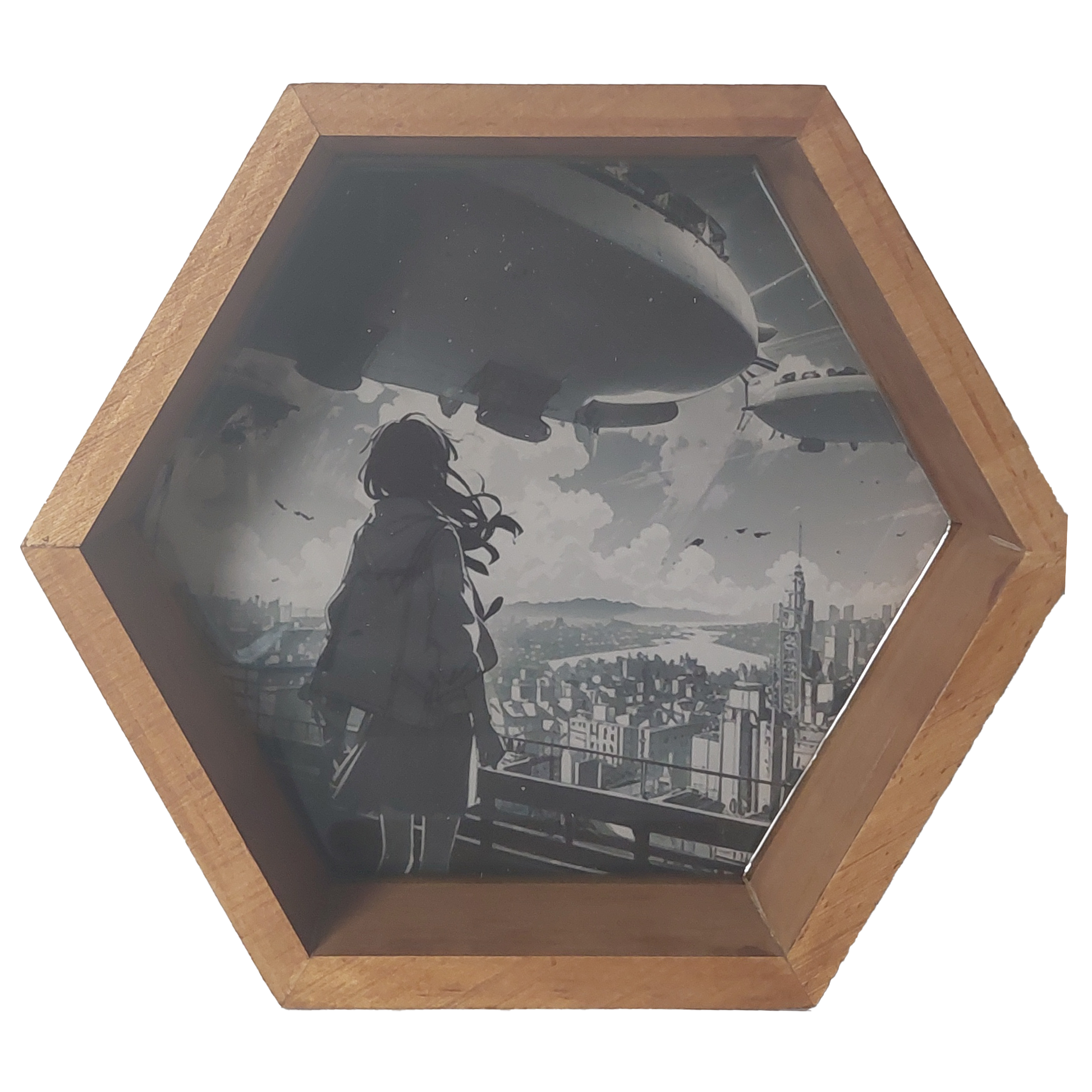 Our 8" hexagonal wooden dice tray features stunning fantasy art captured under a layer of resin. Make your gaming experience even more immersive and visually appealing with this unique and stylish addition to your gaming setup. Each is 2 inches deep, helping to ensure even the feistiest roller can keep their dice where they land. Every roll of the dice will feel like a thrilling adventure with this art dice tray!