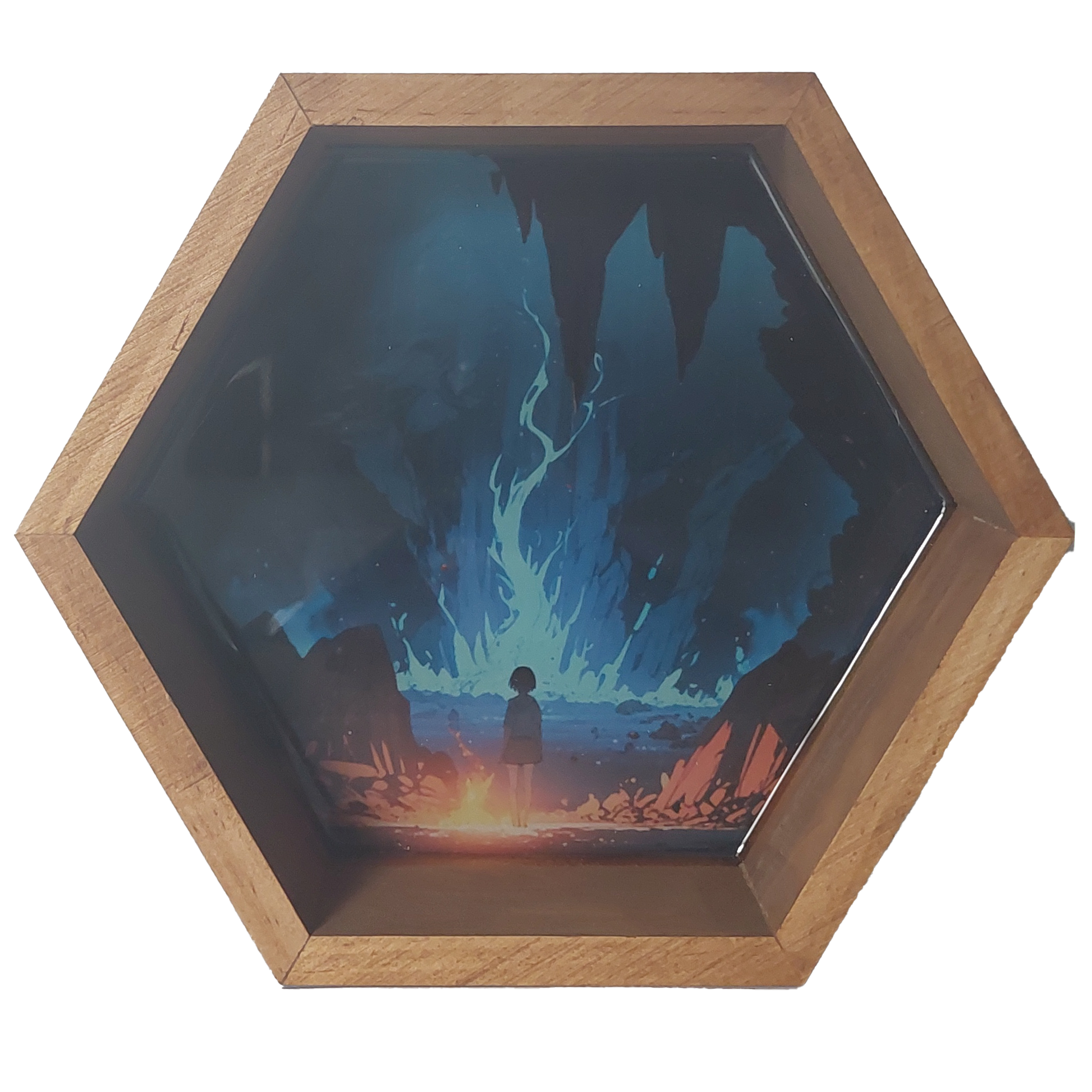 Our 8" hexagonal wooden dice tray features stunning fantasy art captured under a layer of resin. Make your gaming experience even more immersive and visually appealing with this unique and stylish addition to your gaming setup. Each is 2 inches deep, helping to ensure even the feistiest roller can keep their dice where they land. Every roll of the dice will feel like a thrilling adventure with this art dice tray!