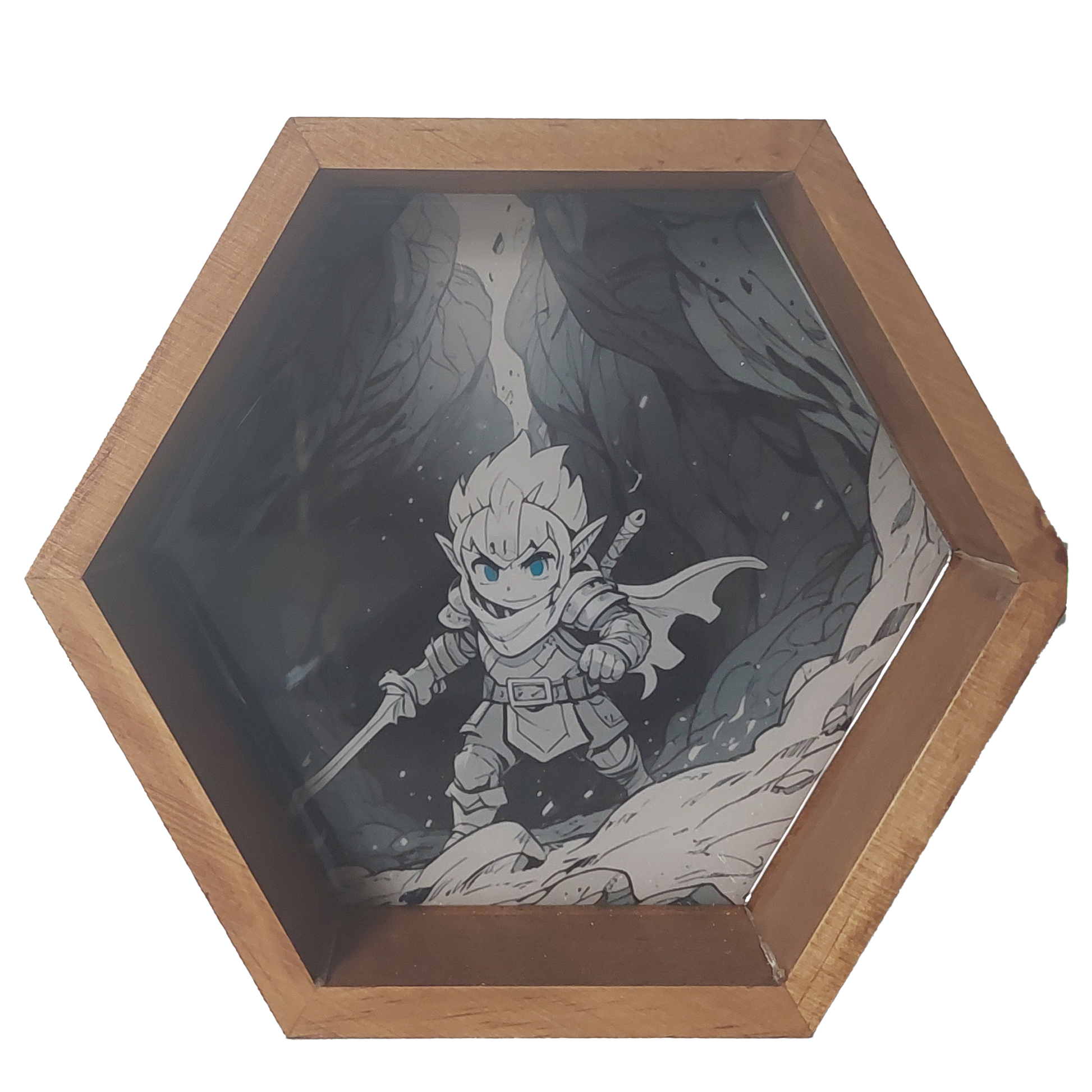 Our 8" hexagonal wooden dice tray features stunning fantasy art captured under a layer of resin. Make your gaming experience even more immersive and visually appealing with this unique and stylish addition to your gaming setup. Each is 2 inches deep, helping to ensure even the feistiest roller can keep their dice where they land. Every roll of the dice will feel like a thrilling adventure with this art dice tray!