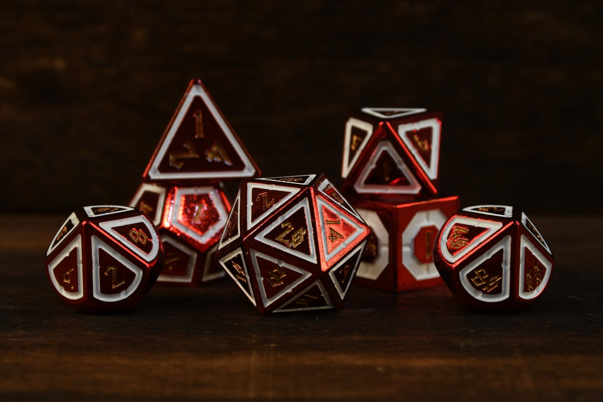 Cleric's Domain Red And White Metal Dice Set