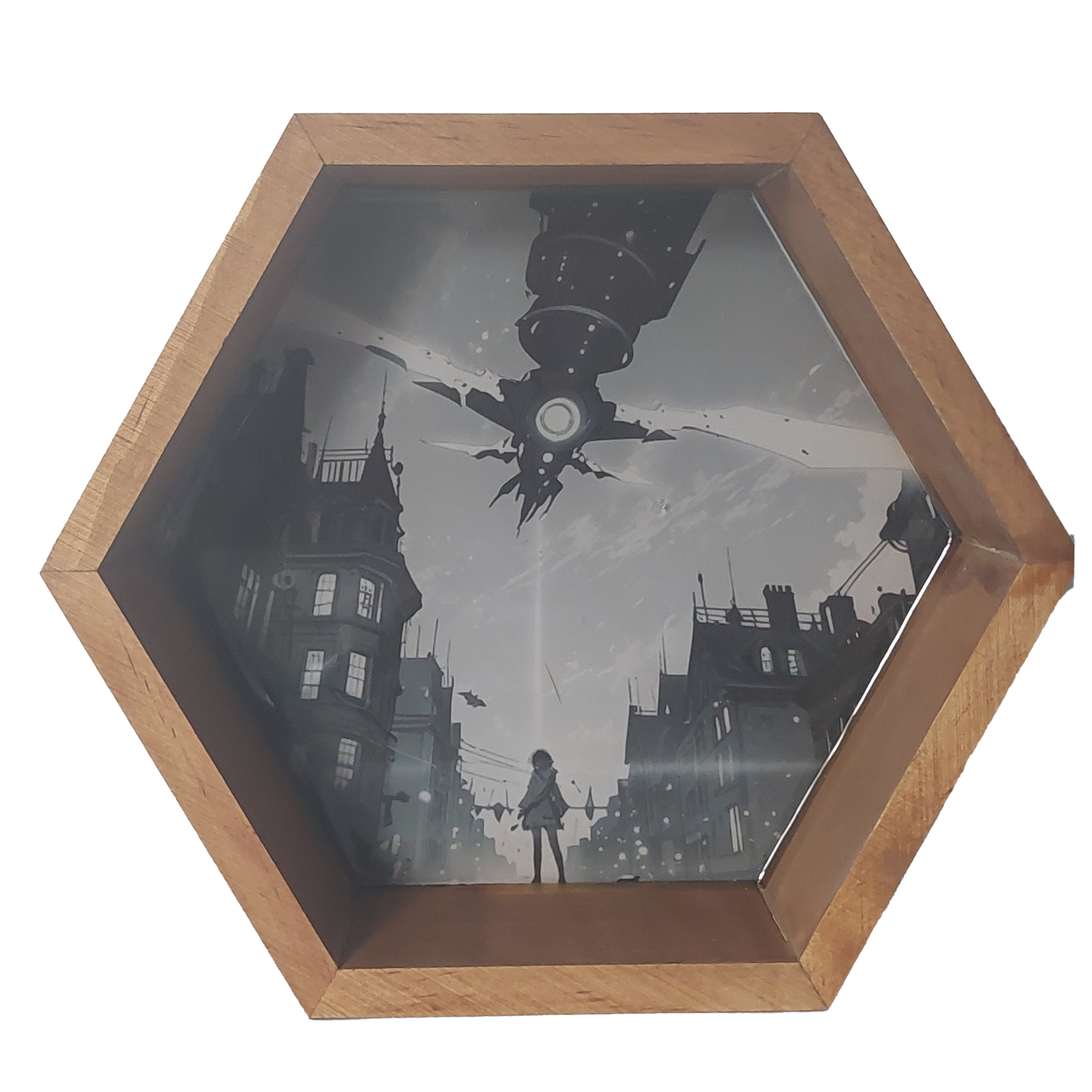 Our 8" hexagonal wooden dice tray features stunning fantasy art captured under a layer of resin. Make your gaming experience even more immersive and visually appealing with this unique and stylish addition to your gaming setup. Each is 2 inches deep, helping to ensure even the feistiest roller can keep their dice where they land. Every roll of the dice will feel like a thrilling adventure with this art dice tray!