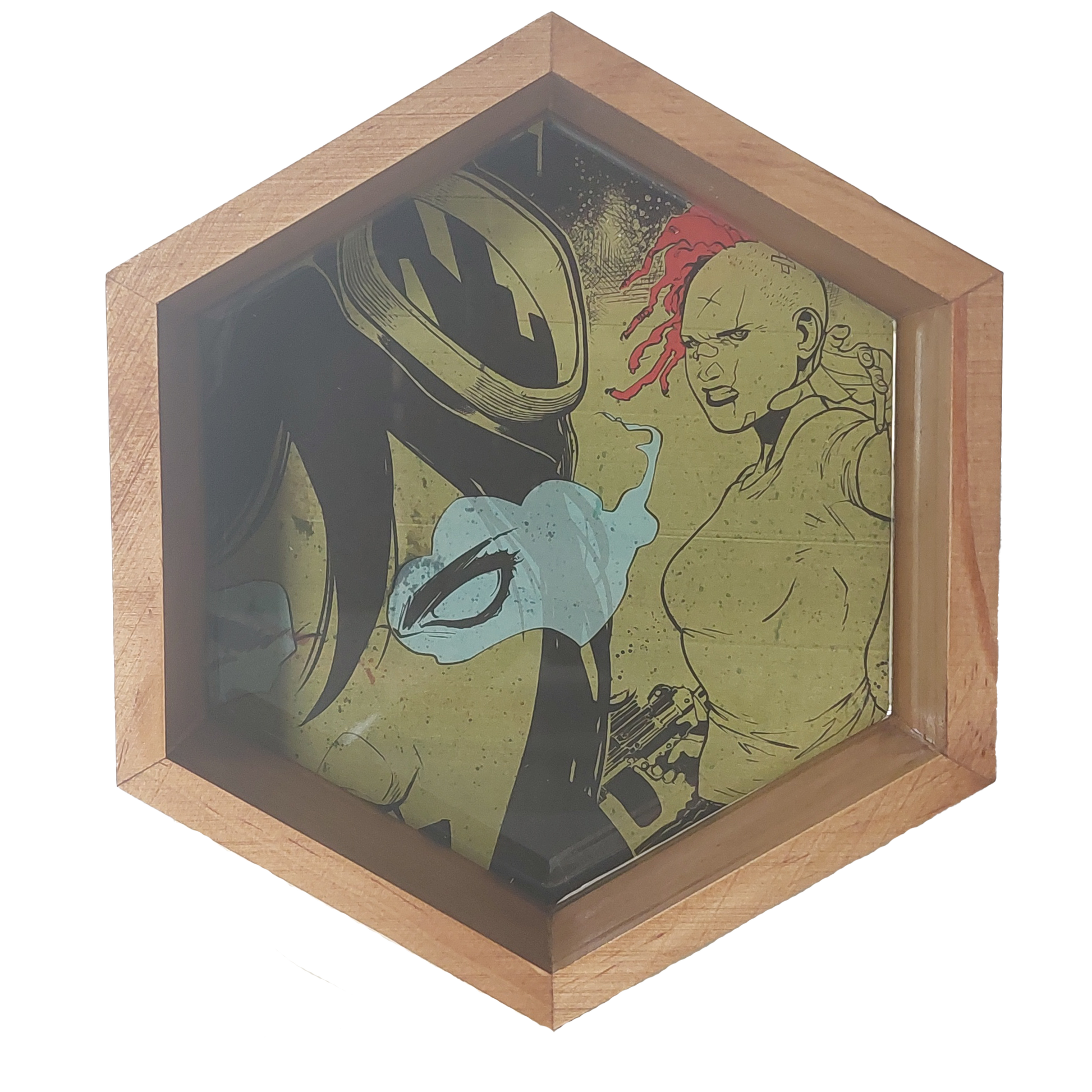 Step up your tabletop gaming with our Comic Book Art Dice Tray! This high-quality wooden tray boasts a 2 inch depth and is adorned with vibrant comic book artwork encased in resin. Each tray is labeled with the source of the art, adding a touch of geeky flair to your gaming experience. Get yours now!